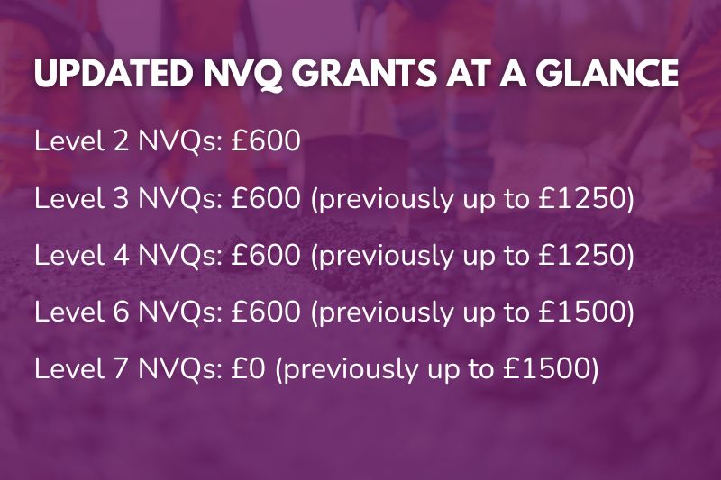 Although this blog focuses on NVQs, it is worth noting other funding changes that affect construction employers and workers: