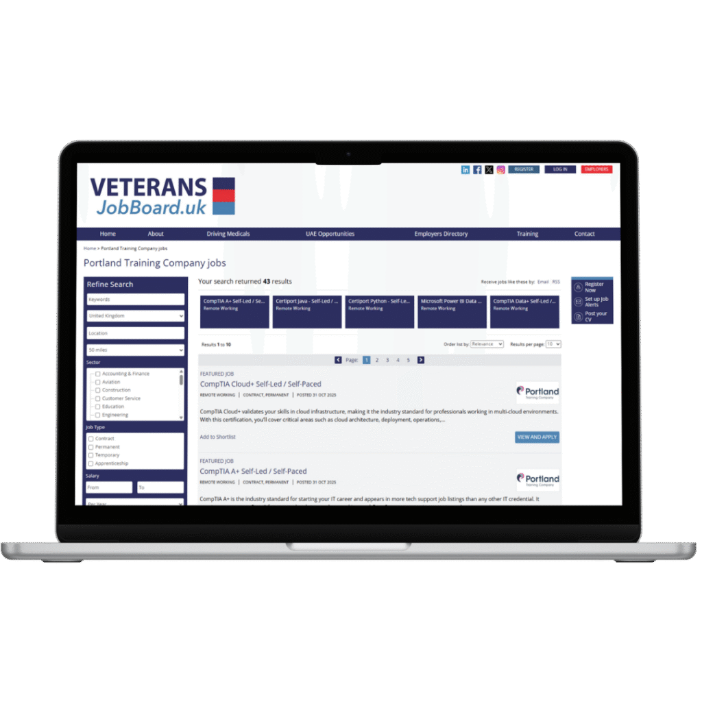 At Portland Training, we are proud to announce that we have officially joined the Veterans Jobs Board UK, a dedicated platform that connects service leavers, veterans and serving armed forces personnel with training and employment opportunities across the country.